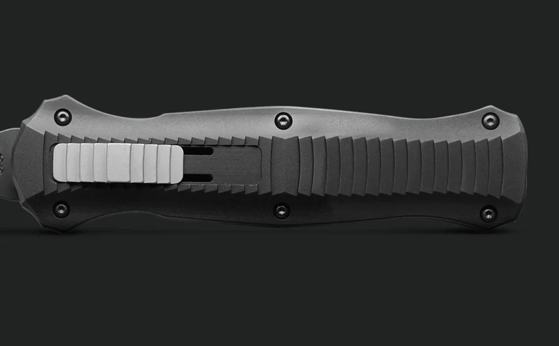 The handle is machined from aerospace-grade 6061-T6 aluminum. Same stuff they build planes with. The textured grip—Benchmade calls it "Bi-Directional Tread Pattern"—keeps it rock solid, even with wet or gloved hands.